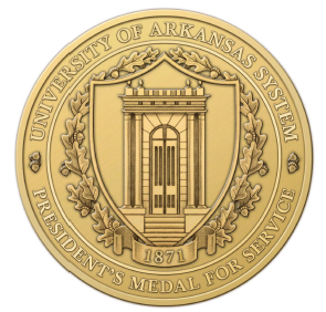 The medal is a discretionary award given by the UA System president and his cabinet to recognize individuals who have demonstrated a distinguished and sustained commitment to helping the UA System carry out its mission to the state through their time, knowledge and philanthropy. Recipients are recognized for their exceptional service and support for multiple units of the UA System.
