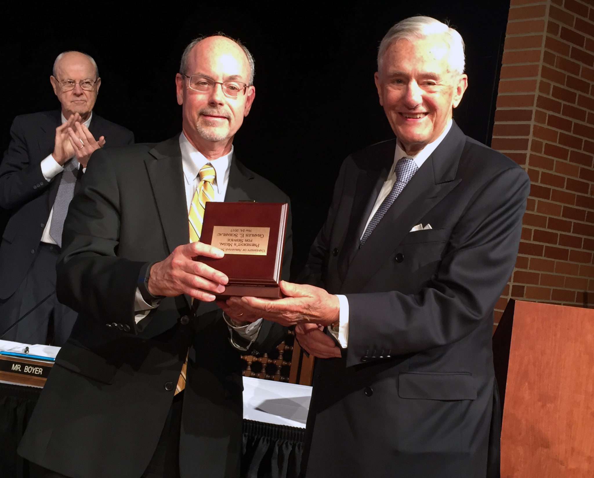 (LITTLE ROCK) May 24, 2017 – The inaugural University of Arkansas System President’s Medal for Service today was given to Charles E. Scharlau, former chairman and CEO of Southwestern Energy and past chairman of the Board of Trustees of the University of Arkansas.